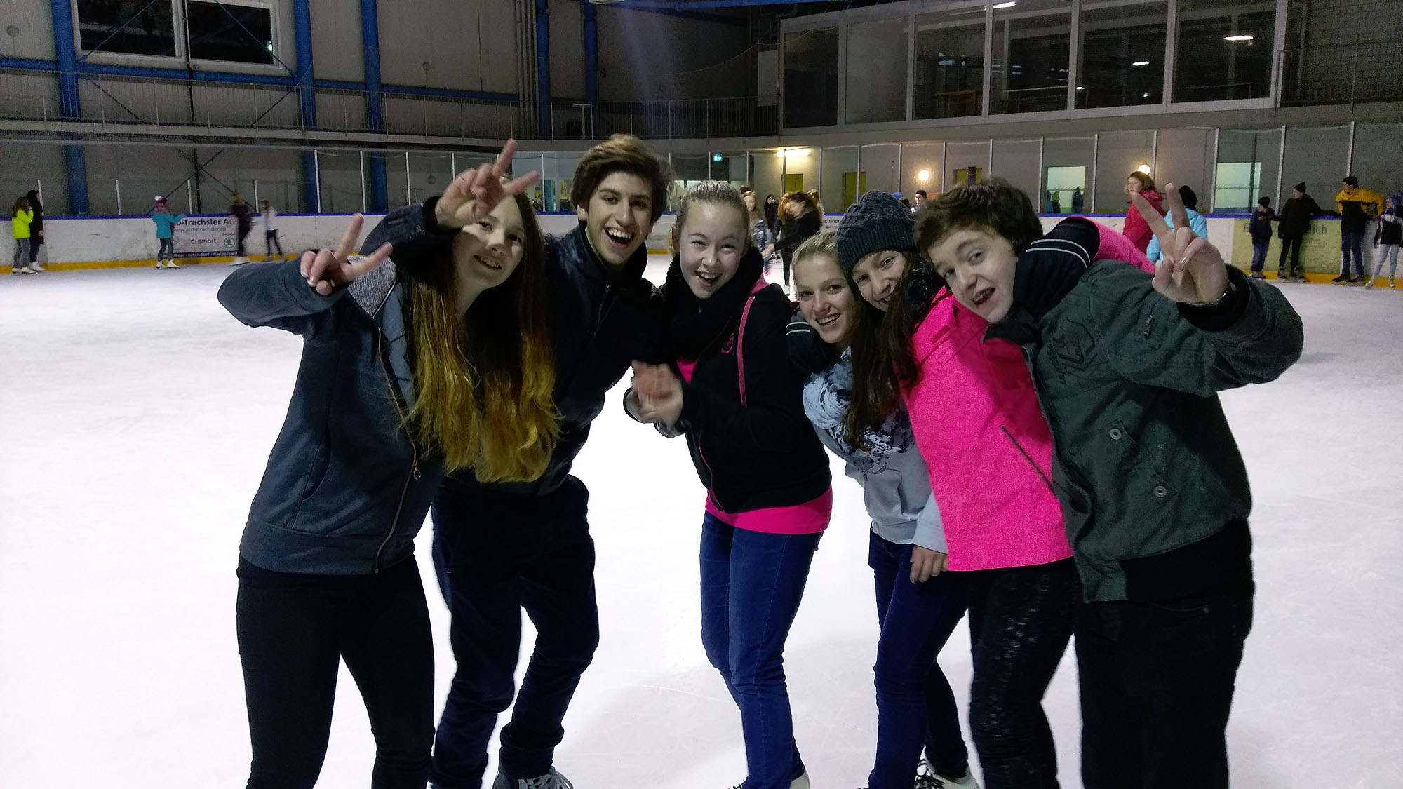 Der/Die noch etwas unsicher auf dem Eis waren, wurden einfach von den Mitschüler an der Hand genommen
