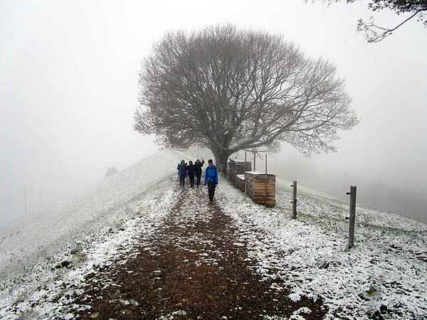 Natürlich hat es sich herumgesprochen, dass es prinzipiell kein schlechtes Wetter, sondern nur schlechte Kleidung gibt. Dennoch freute es alle, dass der Tag uns viele Sonnenstunden bescherte. Das Zürcher Oberland bietet mit den vielen Gratwanderungen bei diesem Wetter ein herrliches Panorama.
