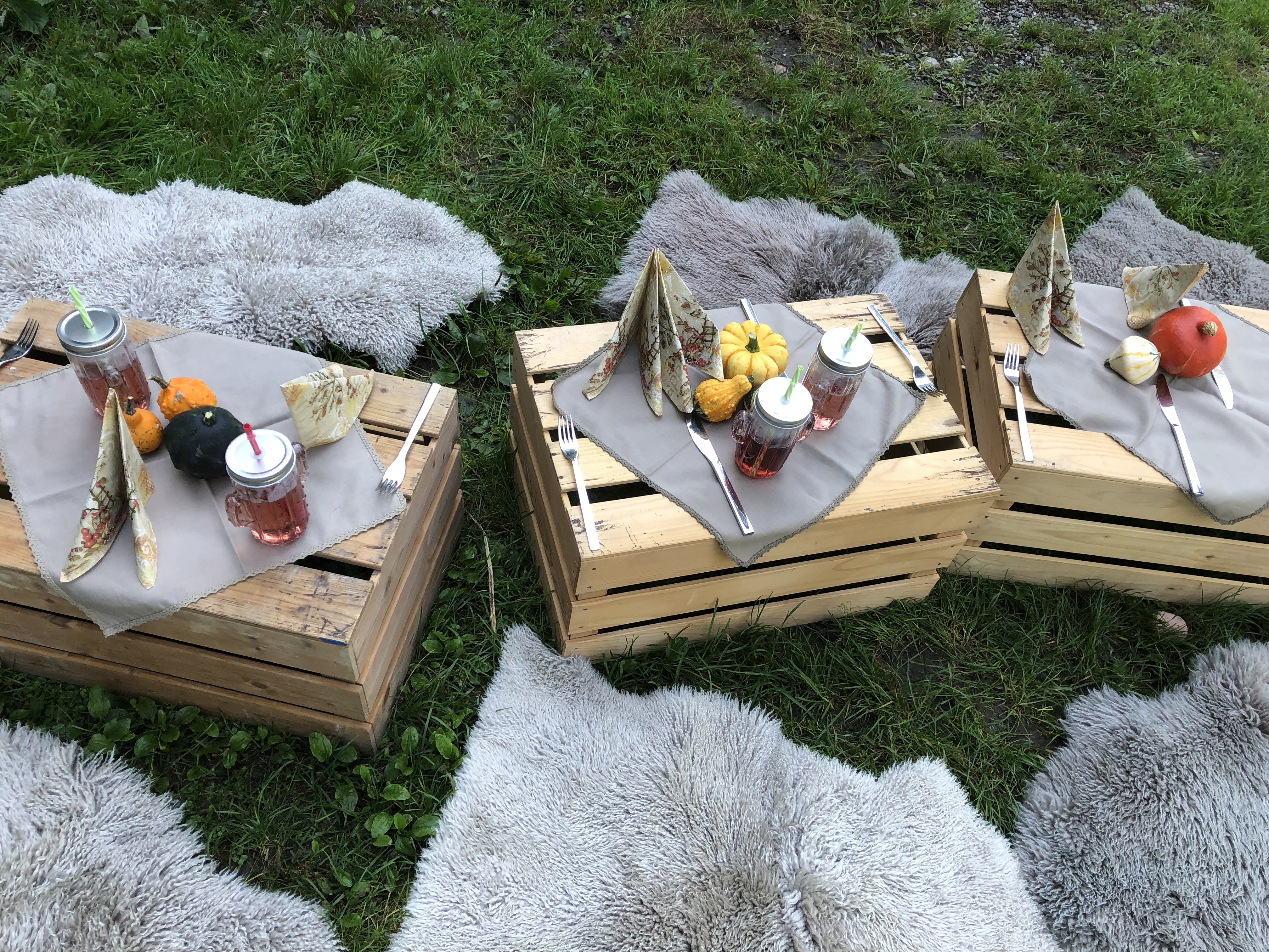 Uns war schnell klar dass wir eine Gruppe sein möchten. So begannen wir, während den Projektlektionen, unser Menu, unseren Ablauf und unsere Dekoration bis ins Detail zu planen. Recht schnell einigten wir uns auf folgendes Menu; Das knusprige Knoblauchbrot diente zur Vorspeise, der Spaghetti Teller mit Hackfleisch (auch als vegetarisches Gericht), war als Hauptgang geplant und der frisch zugerichtete Fruchtsalat sorgte für einen genüsslichen Nachtisch. Um das Essen kümmerten sich Michelle und Ladina am Vortag. Uns war sowohl das Einhalten unseres Budgets wichtig als auch dass die Esswaren frisch sind. Selina kümmerte sich um die Dekoration und wir alle kümmerten uns um Topf, Besteck, Feuer etc.