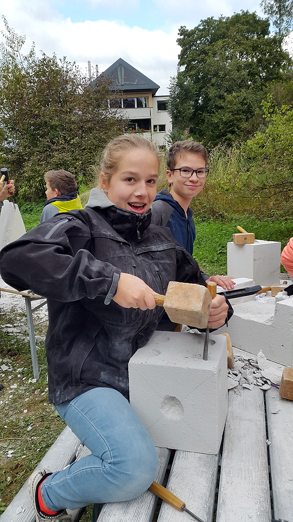 Der Y-Tong Kurs in der Kreativwoche war definitiv der anstrengendste aller Kurse, die wir hatten. Denn aus einem betonartigen Block eine gestalterisch gute Figur oder Skulptur zu formen, war sicher für einige ein ziemlicher Kraftakt. Trotzdem hat der Kurs vielen Schülerinnen und Schülern Spass gemacht. Es war ein lustiger Tag ( zumindest für mich).