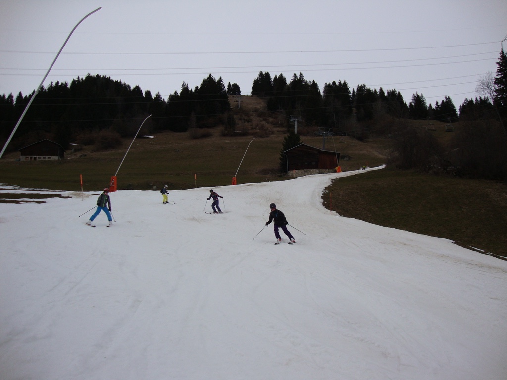 Unser Wintersportlager begann schneelos grün und endete nach Schneegestöber, Nebel und Sturm mit herrlichem Schneesportwetter.