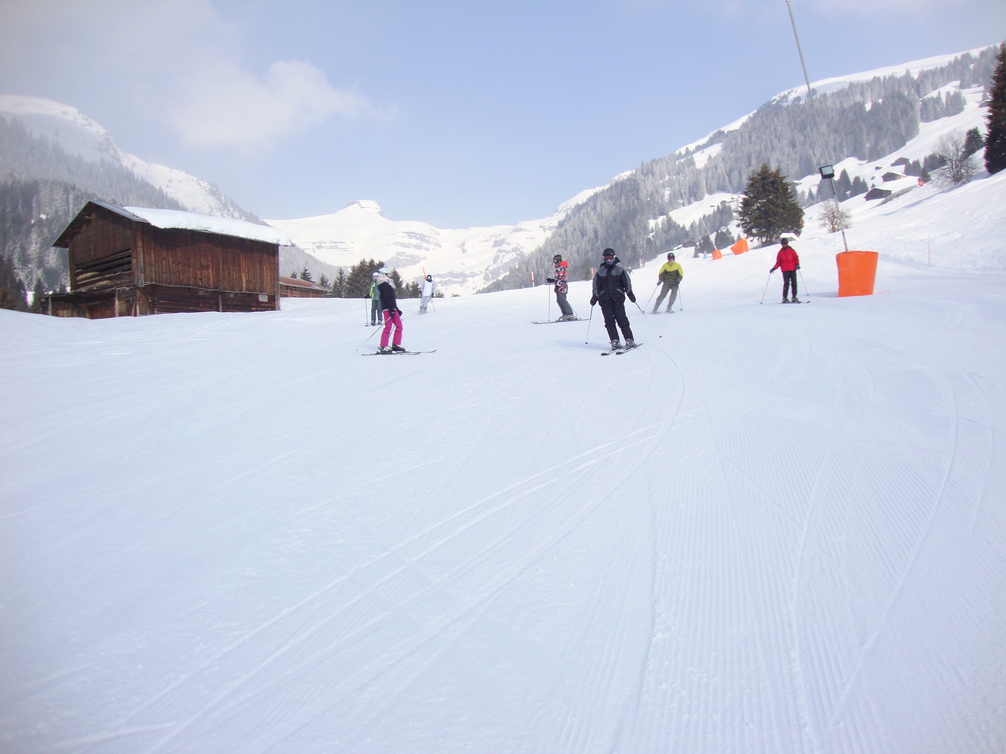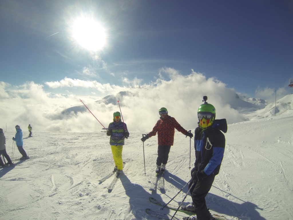 Dort angekommen ging es direkt auf die Piste. Das Wetter war herrlich und dies zog sich durch die ganze Woche. Es war sehr warm, darum war der Schnee ziemlich schnell sulzig aber das störte uns nicht weiter, weil es einfach Spass machte in den Gruppen, unter der Leitung von Lukas und Moritz Nussberger, Pascale des Forges und Herr Schläpfer, zu fahren.