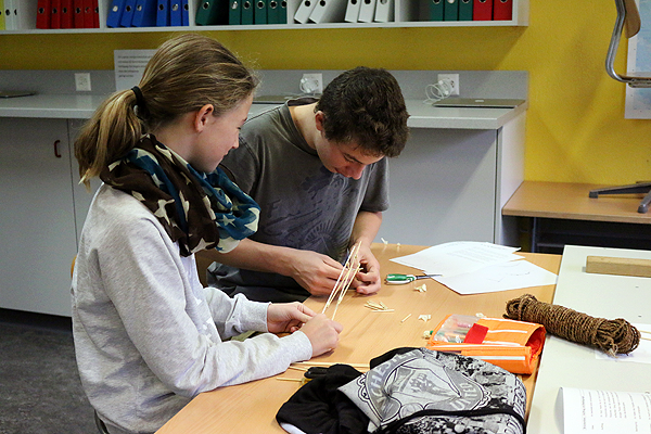 An diesem Tag werden die Schüler und Schülerinnen gemeinsam in den Lerngruppen etwas bauen. Es ist ein kleiner Konkurrenzkampf. Es kommt auf die Planung, das Modell, das Protokoll und das Endergebnis an.
