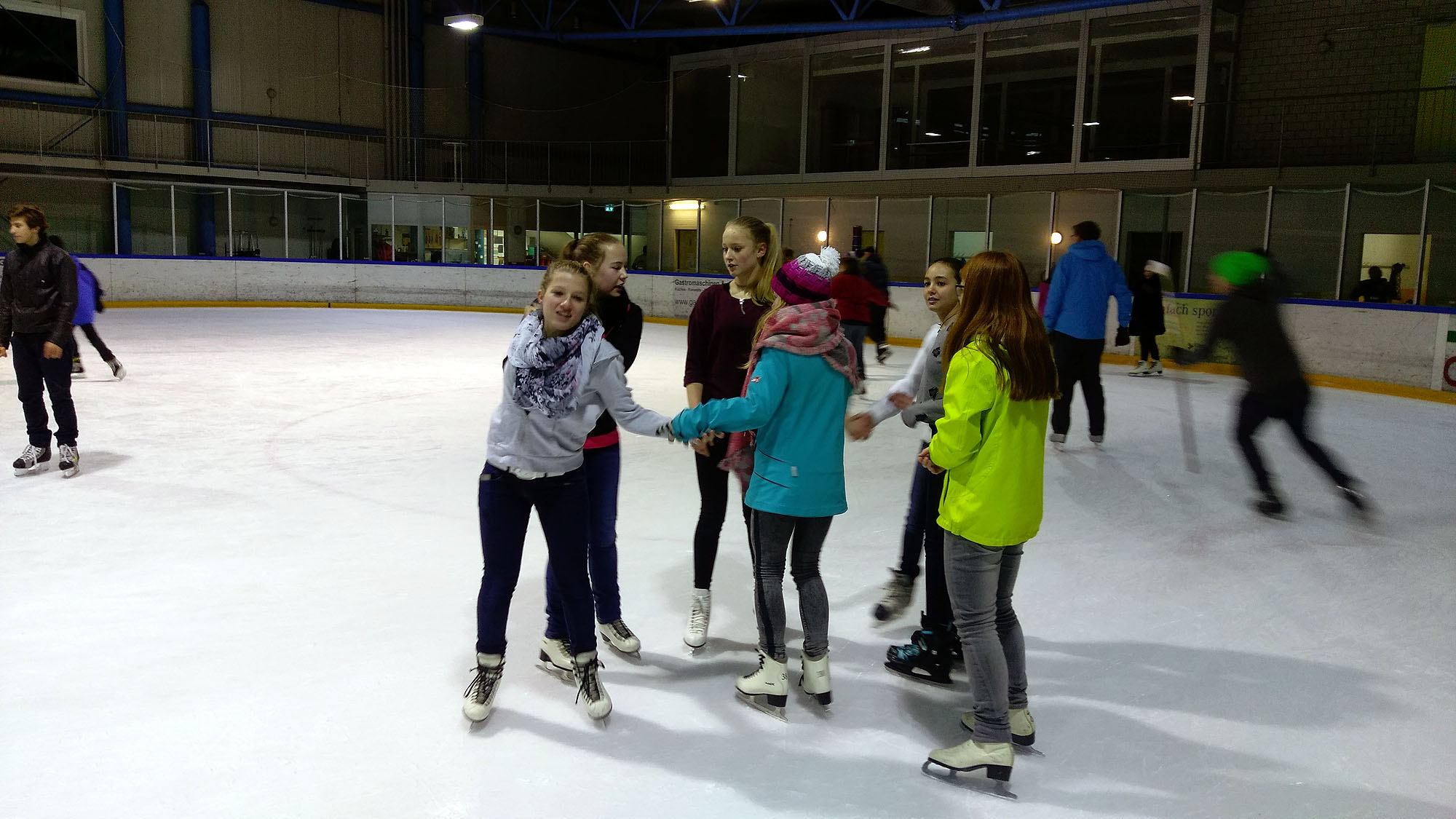 Der/Die noch etwas unsicher auf dem Eis waren, wurden einfach von den Mitschüler an der Hand genommen