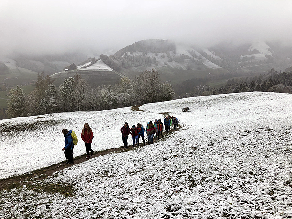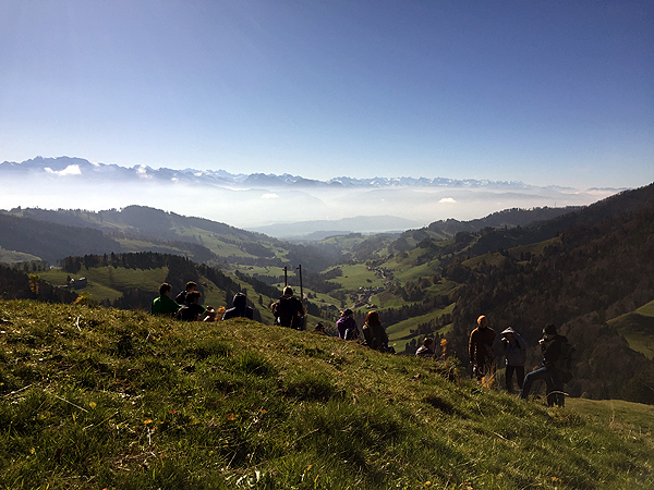 Natürlich hat es sich herumgesprochen, dass es prinzipiell kein schlechtes Wetter, sondern nur schlechte Kleidung gibt. Dennoch freute es alle, dass der Tag uns viele Sonnenstunden bescherte. Das Zürcher Oberland bietet mit den vielen Gratwanderungen bei diesem Wetter ein herrliches Panorama.