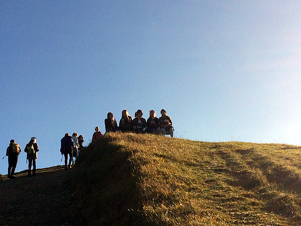 Am Dienstag, 31. Oktober stand ein Sporttag auf dem Programm. Entsprechend sportlich und leistungsbetont sollte die geplante Herbstwanderung ausfallen. So liefen wir in drei Gruppen auf drei unterschiedlich anspruchsvollen Routen. Die längste Route mit 30 Kilometern inklusive 900 Höhenmetern lud einige Schülerinnen und Schüler dazu ein, sich so richtig auszutoben. Doch selbst die kleinste Route forderte die Jugendlichen mit 20 Kilometern inklusive 600 Höhenmetern. Abgesehen von den Jugendlichen -und an dieser Stelle festgehalten- waren auch wir Erwachsene körperlich gefordert.